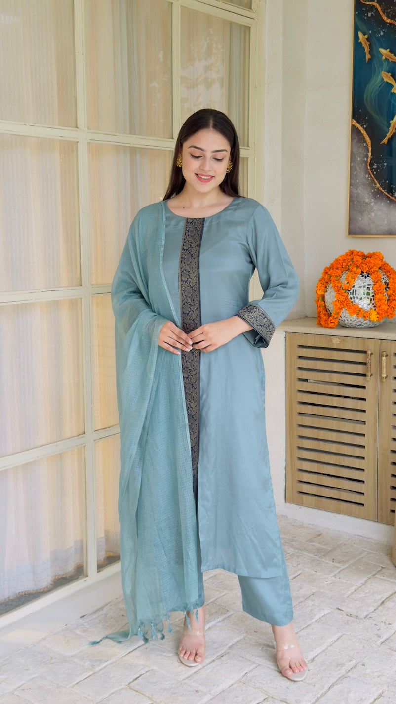 Fabric: Cotton Silk (Kurta and Pant), Kota Doria (Dupatta)