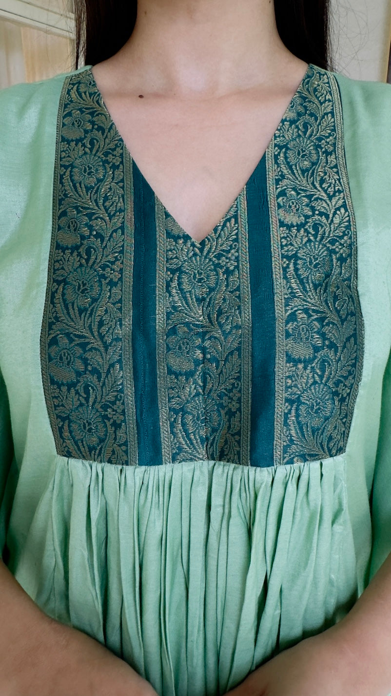 Experience elegance with the Malika Kaftan Pant Set crafted from luxurious cotton silk fabric. Featuring intricate brocket patchwork, this ethnic ensemble is perfect for festive occasions and parties. Its breathable material ensures comfort while the detailed craftsmanship highlights traditional artistry, making it an ideal choice for women seeking a refined and festive look. Dry Clean or Hand Wash with Mild Detergent.