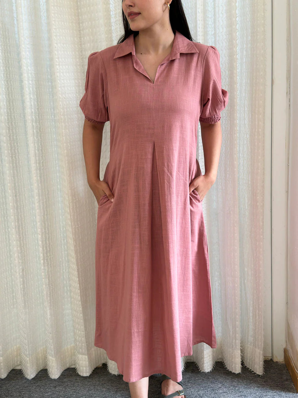Simplicity with a tailored touch. Our Cotton Collar Dress brings together relaxed comfort with a stylish Shirt collar and comfertable elastic sleeves detail. This dress has a straight and easy fit, but the collar adds that hint of structure, making it perfect for both laid-back days and smarter occasions.Experience the effortless elegance of this dress that effortlessly delivers a put-together look every time you slip it on.