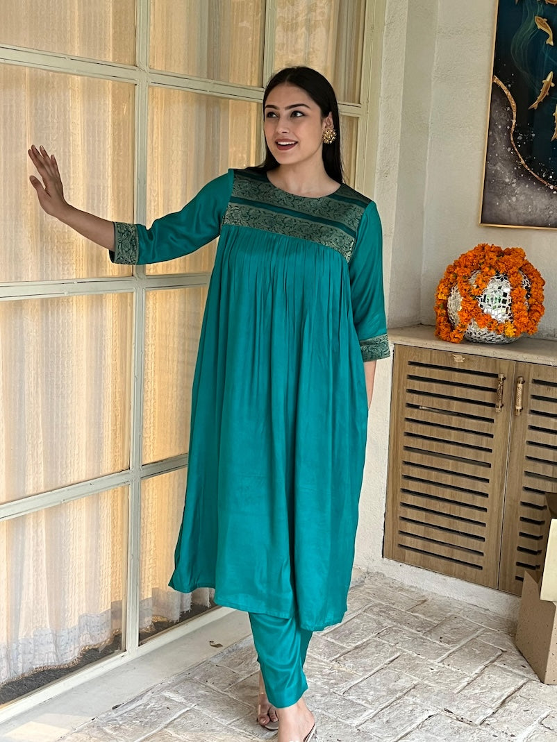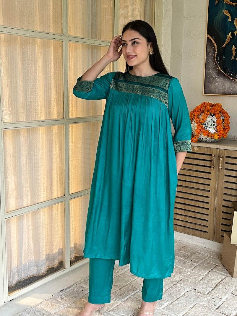 Experience elegance with the Nitya Suit Set, crafted from exquisite Banarasi fabric paired with smooth cotton for ultimate comfort. This festive ensemble includes a matching dupatta, perfect for celebratory occasions. The blend of rich texture and breathable material ensures you stay stylish and comfortable throughout your event. Ideal for those who appreciate traditional craftsmanship with a modern touch. Dry Clean or Hand Wash with Mild Detergent.