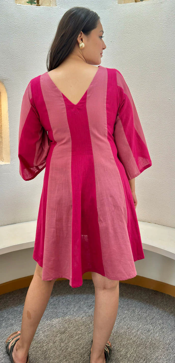 Elevate your work wardrobe with our Rosa Flared Dress! Made from luxurious finished Cotton , this cotton dress includes two shades of Pink. Complete your look with pointed toe heels and a statement tote bag. You'll feel comfertable, confident and stylish all day long!
