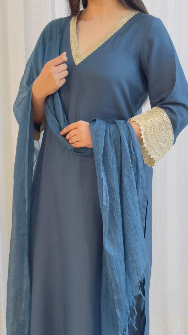 Elevate your ethnic wardrobe with the Zia Suit Set, a sophisticated three-piece ensemble crafted from luxurious cotton silk. This set features a beautifully textured silk Kota Doria dupatta, adding an elegant touch to your festive and wedding season attire. Designed for women who appreciate style and comfort, the Zia Suit Set offers a perfect blend of tradition and contemporary fashion, making it an outstanding choice for parties and special occasions. Dry Clean or Hand Wash with Mild Detergent.